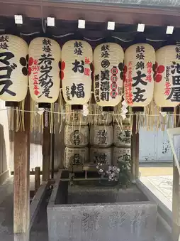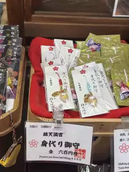 Nishiki Tenmangu Shrine is hidden in Nishiki Market and is famous for praying for exams. This is because the shrine is home to the god Tenjin, the god of learning, and there is also a statue of a cow inside the shrine. It is believed that if a visitor is sick anywhere on their body, they should rub that part of their body first, then the statue of the cow in the same part, and it will heal them. Before entering the temple, there is a place to wash their hands on both sides. Here, you can rent a very famous amulet, a ginkgo amulet. When something bad happens, the amulet will take the bad luck instead and the ginkgo will burst.