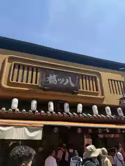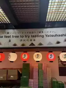 It is a sweet shop with a history of over 300 years. The sweets sold at the shop are called Yatsuhashi (Yatsuhashi), which are fresh dough stuffed with various flavors such as matcha, strawberry, apple, black sesame, mango, and many more. The shop lets us try every flavor, to our liking. The dough is soft and goes well with the filling. It's delicious and goes very well with tea. The shop also sells other menus such as ice cream, wasabi beans, tea powder, and green tea rolls. The prices are not expensive and it's perfect for taking home.