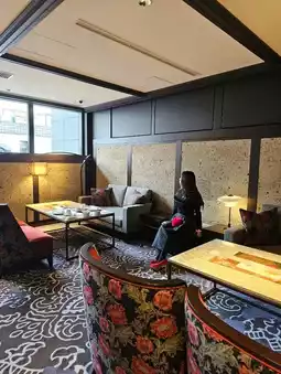 Guests can enjoy complimentary coffee, tea, and local snacks. Drinks can be taken to-go in wooden cups. The lounge also offers a seasonal tea culture experience.