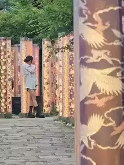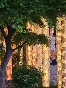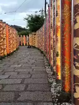 An outdoor art corridor featuring approximately 600 poles adorned with Kyoto-style Yuzen patterns