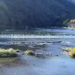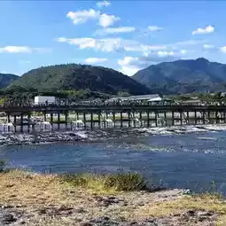 Arashiyama's historic wooden bridge, Togetseikyo Bridge, is both a symbol and a centerpiece of art. While it may appear wooden from the outside, the bridge's pillars and beams are reinforced with concrete, ensuring safety.
