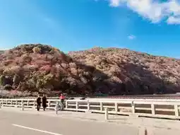 After arriving at Arashiyama-Dori, we took a photo stop by the famous Togetsukyo Bridge. We were lucky enough to see the autumn leaves in full bloom in early December, and the scenery was truly breathtaking.