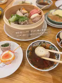 Vegetable-wrapped steamed shabu-shabu and homemade shumai prepared in-house✨
