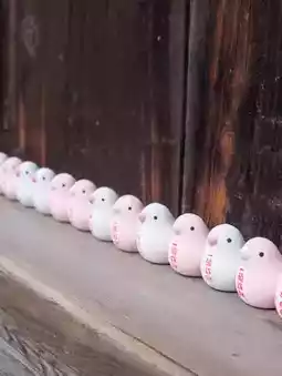 The dove-shaped omikuji (fortune slips) are popular and often shared on social media.