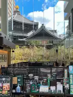 In spring, the cherry blossoms are stunning, and you can enjoy the view while sipping coffee from the Starbucks located in the adjacent building 🌸.