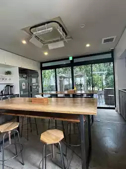 As soon as you step inside You'll experience a cool, minimalist atmosphere with a blend of Japanese and modern styles. 🤍🖤 The common area is designed to be airy, spacious, and comfortable. There's also a lounge area perfect for working, relaxing, or meeting travelers from around the world. 🌍