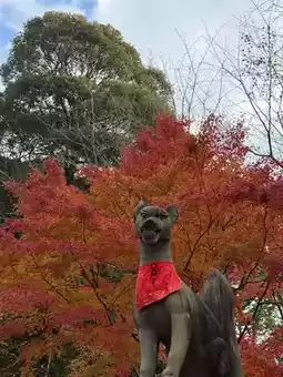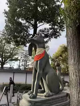 • The statue of the fox "Inari," the symbol of the shrine, adds a sacred aura.