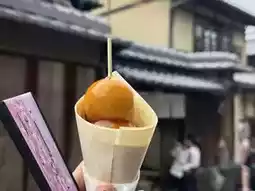 Don't forget to buy dango in Kyoto! Take a commemorative photo with it; it's so cute. 😻 As for the taste, it's quite polarizing, so I can't say much, but since they served it warm, I found it delicious.