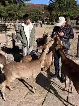 🦌 Friendly deer everywhere! You can buy 10 special deer cookies for just 200 yen (I got 3 packs – they disappear fast 😅).