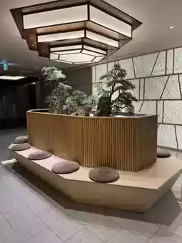 The lobby features Kyoto's "brick walls that reflect the four seasons," exuding the warmth of wood and a lovely Japanese atmosphere.