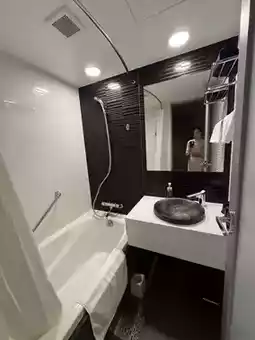 The hotel features a large public bath, allowing you to relax and unwind after a long day of travel.