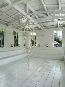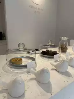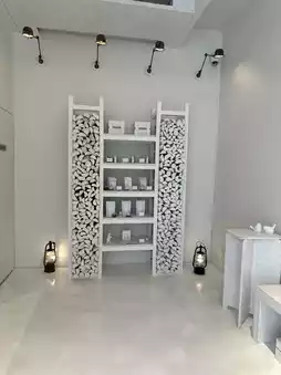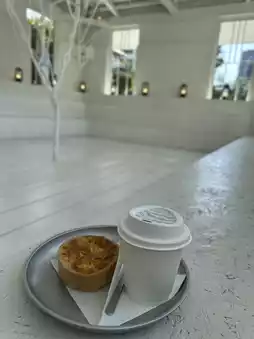 ตกแต่งในโทนสีขาวทั้งหมดเช่นดียวกัน และกรุด้วยหน้าต่างกระจกใสทำให้ภายในร้านสว่างจากแสงธรรมชาติ