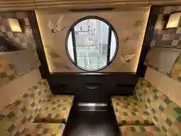 Stroll through each carriage to soak in the unique art themes—don’t miss the panel murals and subtle lighting!