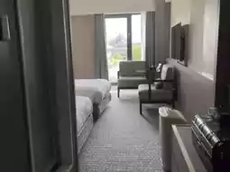 Step inside, and you'll be greeted by a refined space where traditional Japanese aesthetics meet modern design. At the heart of the lobby lies a courtyard with flowing water, creating a tranquil ambiance reminiscent of a Kyoto tea garden, with light shimmering through the seasons and times of day.