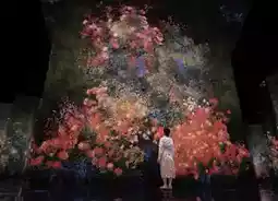 This is not just an art museum space; for the first time, teamLab integrates modern digital art with Buddhist culture and ancient architectural structures within the 1,200-year-old To-ji Temple.