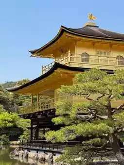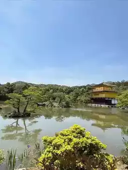 The three-tiered structure showcases a blend of architectural styles: the first floor features the Shinden style, the second floor adopts the Buke style, and the third floor is a Zen Buddhist hall. Each level is adorned with gold leaf, and the phoenix atop the roof glistens brilliantly under the sun. 🕊️ Surrounded by pine trees, the scenery changes with the seasons—cherry blossoms gently brushing against the golden facade in spring, fiery red maples complementing it in autumn, and snow blanketing the roof in winter, creating a divine interplay of gold and white. ❄️🌸