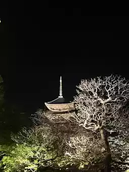The five-story pagoda, which has stood for over a thousand years, exudes an even more striking presence in the darkness of the night. ✨