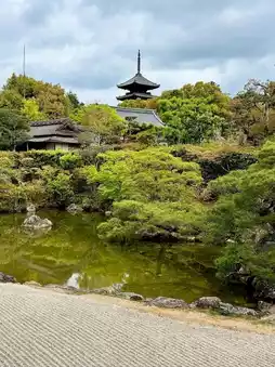 The temple was once destroyed during the Onin War (1467–1477) but was rebuilt in the 17th century with the strong support of the Tokugawa shogunate. Most of the existing main structures date back to the early 17th century. Ninna-ji features attractions such as the Five-Story Pagoda, the Golden Hall (Kondo), the Nio Gate (Nio-mon), and the Omuro cherry blossoms, which are known to bloom later than other cherry blossoms in Kyoto. The expansive grounds also include walking paths and traditional Japanese gardens, offering a serene and tranquil atmosphere.
