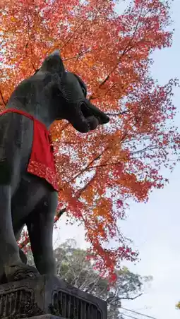 🦊 Admire the sacred fox statue (Kitsune), believed to be the messenger of the god Inari.
