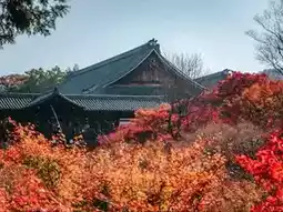 Tofukuji Temple is a premier destination for autumn foliage viewing in Kyoto. The autumn breeze paints the maple leaves here in a rich tapestry of red, orange, and golden hues, blending with traditional Japanese architecture and towering pine and cypress trees to create a breathtaking seasonal panorama. As sunlight filters through the vibrant leaves, casting a warm and dazzling glow, visitors strolling through the area can fully immerse themselves in the tranquility of a Kyoto Zen temple and the brilliance of autumn.