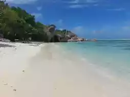 If you're visiting the island of La Digue in Seychelles, a trip to this marvelous beach is necessary. The beach's entrance lies within L’Union Estate, a nature reserve on the island's west coast. Entry costs 150 Seychelles Rupees (about £8) and includes a numbered wristband as proof of payment. Walk a few more meters, and you'll emerge through the trees onto this stunning beach with soft white sand. The shoreline extends about 2 kilometers (1.2 miles) and, depending on the tide, may be divided by immense, ancient-looking granite boulders, a prominent feature here. The clear turquoise waters allow easy spotting of fish swimming nearby. You could also explore further offshore in small glass-bottomed dinghies, possibly spotting a passing turtle. When the tide is high, you might not get around the boulders, but there’s a path through the vegetation just behind the beach that follows the entire stretch. Along this path, there are a few spots to relax and grab refreshments from small stalls, or even do some shopping. The beach is casual, so bring your own towels and settle down wherever you please. Whether you have much time or specific plans, you'll enjoy this highly photogenic tropical paradise.