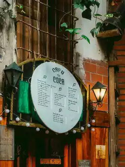 A mummified llama hangs at the entrance, creating a unique atmosphere.