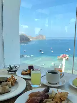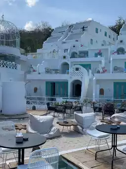 First of all, this is not the Mediterranean Sea in Europe, this is Komodo, Indonesia. This time I stayed in a great hotel, built on the mountain, opposite the sea, and the blue and white color scheme, the whole illusion of being in the Mediterranean, the food in the hotel is also super delicious.