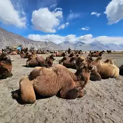 Nubra Valley is truly breathtaking, with its stunning mountain vistas, lush green villages, and sand dunes. The natural contrasts here are surreal, giving the impression of multiple worlds in one place. Snow-capped peaks, desert sands, and tranquil rivers coexist harmoniously.