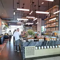 In the lobby, there is a ☕️ cafe, The Hub Bar & Dali, where you can sip hot or cold drinks, eat bakery goods, or just sit and work or chat about work.
