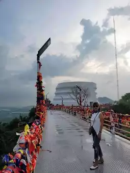 🐱 Hello everyone, today I'm going to take you to review a beautiful temple in Chonburi province. Besides its beauty and the Buddha statues we can pay respect to, another highlight of Wat Khao Tabak is the skywalk on top of the mountain. We have to walk up to the highest point, and I must say, the view is refreshing and worth the effort. There are many photo spots. It's another temple worth visiting.