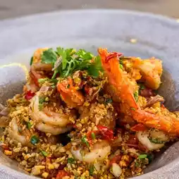 A super chill seafood restaurant by the sea in Pattaya. The atmosphere is great and there is live music playing softly, adding to the romance. There is a wooden bridge extending into the sea, perfect for taking photos to capture the atmosphere. But if you like a cool air-conditioned room, there is also an air-conditioned zone here.