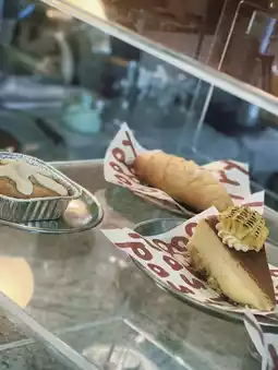 • The shop feels like a friend's house, decorated in earth tones, with wood and nature tones, and there are seats both inside the shop and outdoors under the trees.