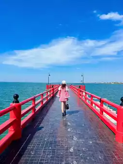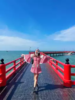 🌉 Yuu Red Bridge, a striking red bridge by the sea, stretches out into the waters of Sriracha. This bright red wooden bridge stretches out into the sea, offering a peaceful and romantic 360° panoramic view. Enjoy a leisurely stroll, enjoy the cool sea breeze, and capture stunning photos from every angle. It's like stepping into another world of tranquility. Perfect for both chillers and photographers seeking unique memories. 🌊🌅