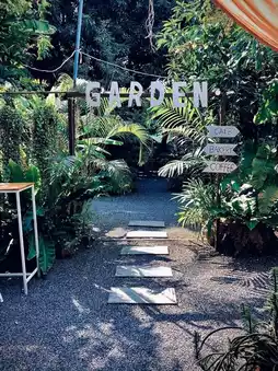 WR WannaRich Home cafe' is a lovely home cafe! The tranquil, natural setting is perfect for those looking to relax, take photos, and unwind in a warm atmosphere. There's both an air-conditioned area and a shady garden area. Enjoy a wide selection of beverages, including tea and coffee, homemade Big Waffles, and food.