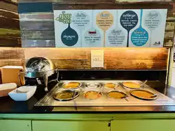 🎊🍽️💓Khanom Jeen Buffet, Namya Pa, a delicious restaurant in Laem Chabang. They offer both Khanom Jeen and steamed rice. They also offer coconut milk curry, jungle curry, southern curry, nam prik, nam ngiao, green curry, and kaeng tai pla curry. The delicious, rich curry is also served with som tam, fried food, fresh and boiled vegetables, desserts, soft drinks, and herbal drinks. The restaurant is constantly stocked with high-quality ingredients. The restaurant is spacious and clean, and the service is excellent.