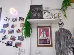Soft Bingsu shop is located opposite D Park Condo near Sriracha Tiger Zoo. From the outside, it looks like a small, minimalistic shop, but once you step inside, you'll find a dedicated dessert-making room and a cozy seating area for customers. The interior is decorated in a cute, minimalistic style. I visited during Halloween, so the shop was themed accordingly.