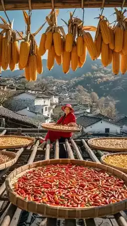 The old persimmon trees in Luotuowan Village are still stubbornly thriving, stone walls are hung with drying corn and chili peppers, and every corner looks like a cover of China National Geographic!