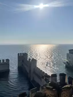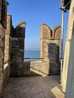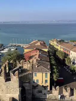 โข Climbing the main tower offers panoramic views of the peninsula and Lake Garda.