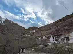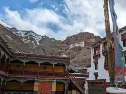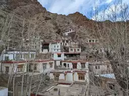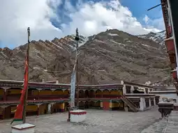 It's about 1.5 hours by rental motorbike from the city of Leh. The 17th century monastery is quietly located in a remote valley.