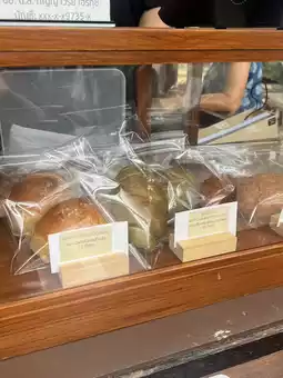 Wild Flowers Bakery is a freshly baked bread shop located at Kong Akong. Saturday-Sunday opens from 9:30 a.m. to 3:00 p.m. But I recommend going before noon because I went there when the shop was about to close and there were only a few pastries left. It is a bread shop with affordable prices and good taste. Good quality, for example, Shio Pan is only 35 baht. I personally like the Berry Cream Cheese Bagel the most. The taste is super good. No need to heat it up.