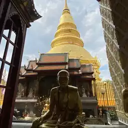 The golden chedi's striking contrast against the sky is truly breathtaking! ✨ Upon entering, you'll feel a sense of tranquility, awe, and a true Lanna cultural atmosphere.