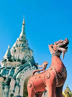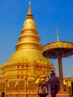 The highlight is the "Phra That," a glorious golden Mon-style chedi that stands majestically in the temple grounds. Surrounded by the Royal Vihara, the Dharma Hall, and beautiful ancient archways, it's perfect for religious buffs, photographers, and those fascinated by Lanna art.