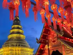 ⏰.. The Hundred Thousand Lantern Festival in 2025 will begin with the first day of lantern worship on September 19, 2025, and will continue until November 10, 2025, around Phra That Hariphunchai, Wat Phra That Hariphunchai, along the road in front of the temple's city gate arch, and the Queen Chamadevi Monument in Lamphun.