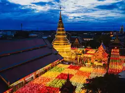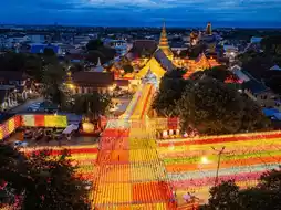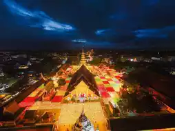 The ceremony of offering lanterns to the Phra That Hariphunchai as a Buddhist homage to the sacred relics of Hariphunchai for the year 2025, held at the courtyard of Phra Chao Lavo Viharn, Wat Phra That Hariphunchai Woramahaviharn.