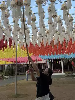 The traditional "Lantern Hanging" event at Wat Phra That Hariphunchai Woramahawihan in Lamphun Province is part of the "Hundred Thousand Lanterns Festival," held to pay homage to Phra That Hariphunchai and to honor Queen Chamadevi. It's considered Lamphun's grandest and most beautiful festival.