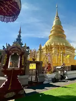 This temple houses Phra That Hariphunchai, the sacred stupa for those born in the Year of the Rooster. It contains the Buddha's hair relics enshrined in a golden urn, similar in appearance to Phra That Doi Suthep in Chiang Mai.