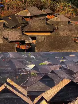 Villages around Jingmai Mountain: Wengji is currently under renovation and is relatively small. It's suitable for watching sunsets, and it's best to stay overnight. The giant banyan tree is worth seeing. The buildings are few and scattered, mainly Bulang-style architecture. Manghong features a mix of old and new buildings, offering average photo opportunities, but it's more suitable for tea tasting and leisurely watching the sunrise. Mangjing Shangzhai is ideal for accommodation, with a welcoming host and stunning sunset views. Nuogan boasts a dense cluster of buildings, offering breathtaking views from higher vantage points—the most recommended spot on this trip.