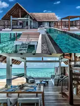 The resort features 103 luxurious villas, including overwater and beachfront villas, as well as a beachfront presidential suite. Designed by Sri Lankan architect Murad Ismail, the resort showcases a harmonious blend of ancient Maldivian architectural techniques and modern Sri Lankan influences. From the 45-degree pitched thatched roofs to traditional coral walls and lush tropical gardens, every structure embodies authentic local style.