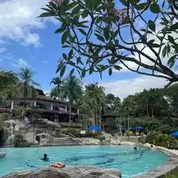 A resort hotel full of jungle-like nature. The large pool was nice. Many people read books at the pool or on the beach, so you can relax. The grounds are large, so they will take you to wherever you want to go by car. This is also fun! Monkeys appear everywhere, and they are especially cute when they are with their parents. The breakfast buffet is in a cozy place with a view of the sea. There are many live kitchens, and I liked the banana crepes.