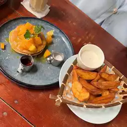 This was a hidden gem we came across while looking for a parking. And we consider ourselves lucky because it quickly became our favourite spot. The menu has a wide variety of items such as toast, sandwiches, pancakes, waffles, soup, and nachos. The pancakes and waffles are topped with mango and coconut milk cream, which is very Southeast Asian.